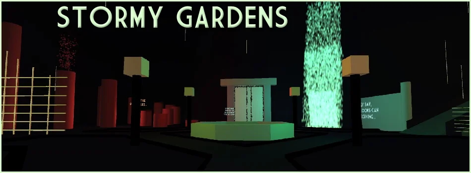 This is a short Unity 3D level that was built on random words that were assigned to me. The words were 'Stormy Gardens'. This game was created over 4 days as part of a project to produce 6 games over 6 weeks, each with 4 days creation time. At the end of the level, you reach a portal, which will immediately send you to the webpage of another student's game, and this repeats until every class member's level is connected to each other.